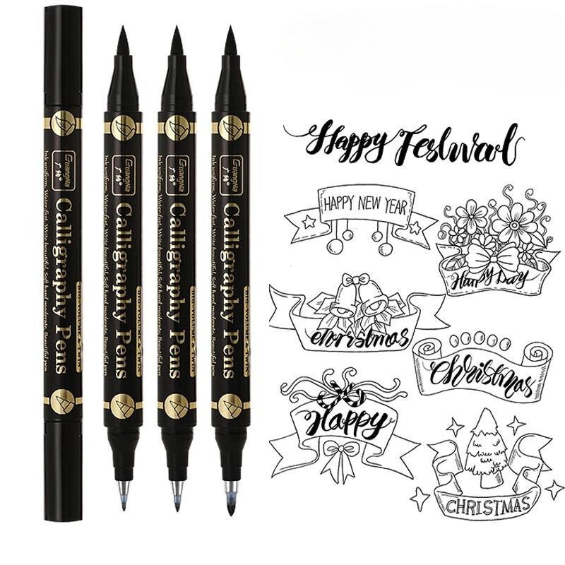 Pointe fine pour détails et contours; pointe pinceau pour pleins, déliés et lettrages expressifs.